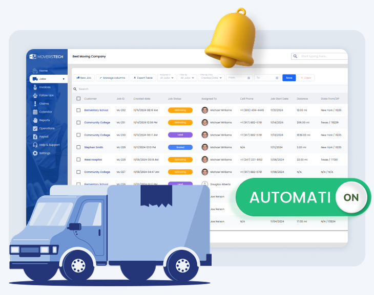Faster response times and clearer follow-ups improve how customers experience your service. When routine tasks run automatically, moving companies can focus more on quality instead of manual office work. This creates a smoother process from booking through job completion. With MoversTech CRM, teams can take full advantage of AI for moving companies through automated workflows that support communication, follow-ups, and claims management. Automated moving company communication keeps customers informed, reduces uncertainty, and limits unnecessary back and forth. As AI for movers continues to develop, automation will play a larger role in helping moving companies deliver consistent service while maintaining efficient daily operations.